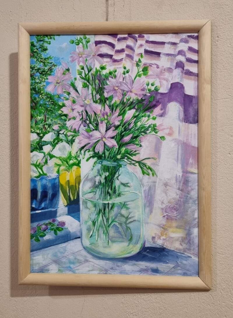 wilde-blumen-im-glas, Mischtechnik, 40x40cm