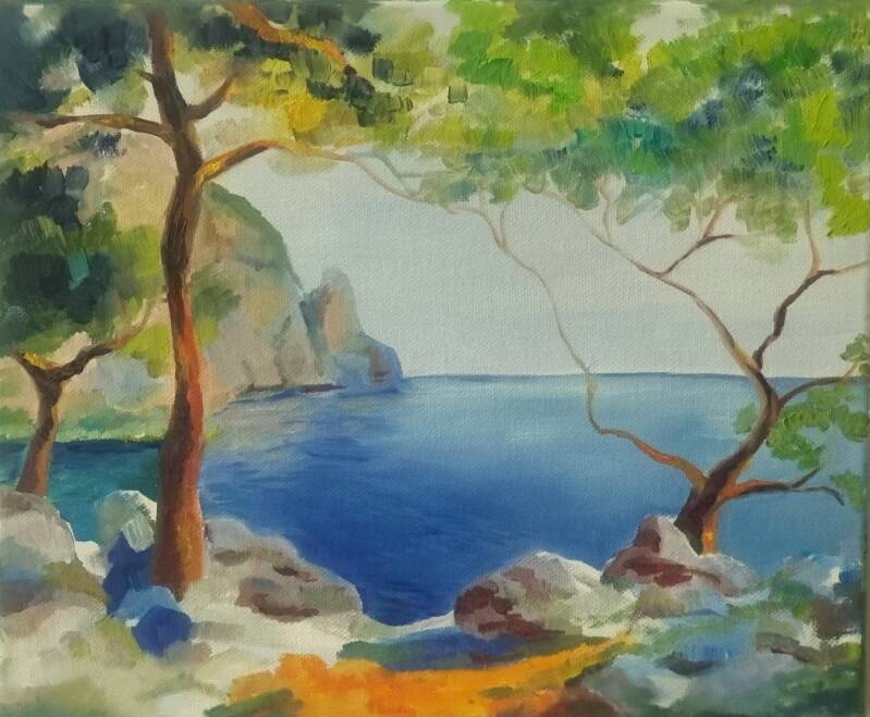 Küste im Süd Frankreich, Öl, Leinwand, 30x25cm, 2024
